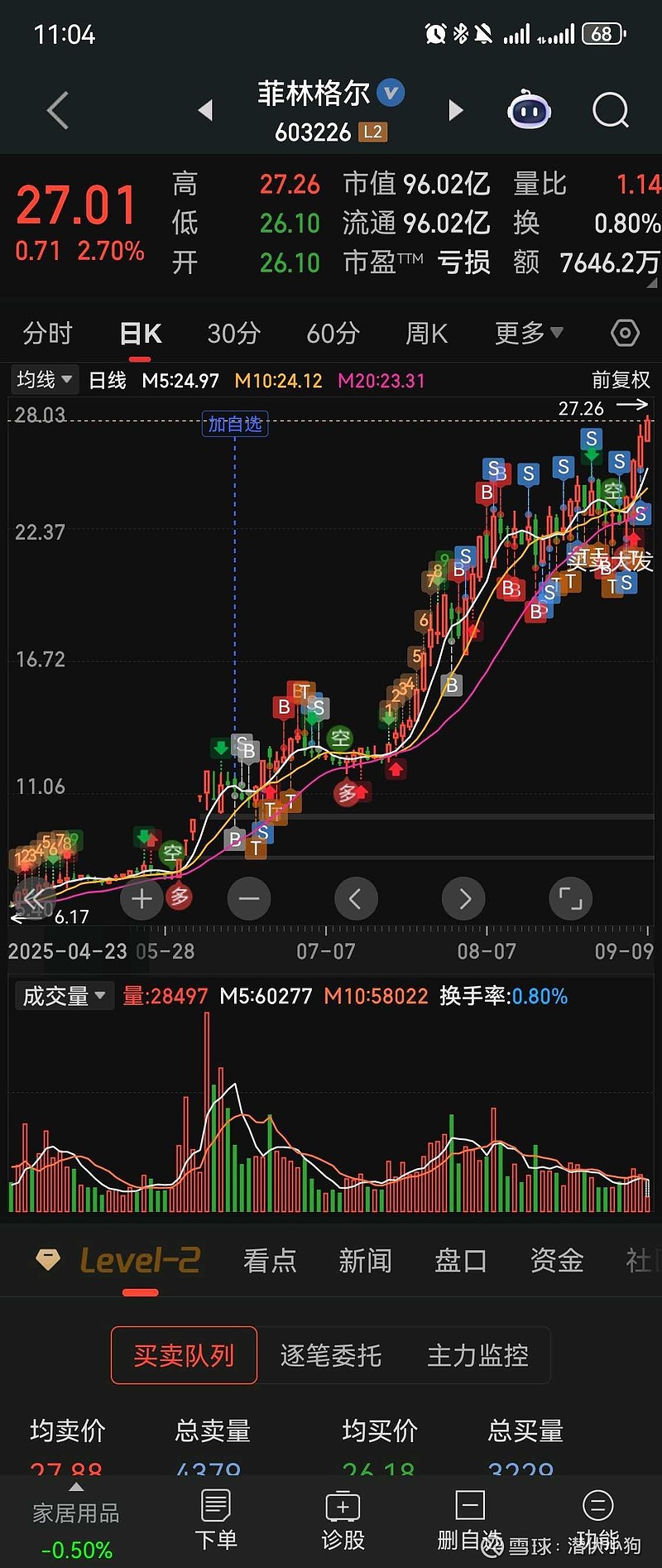$菲林格尔(SH603226)$