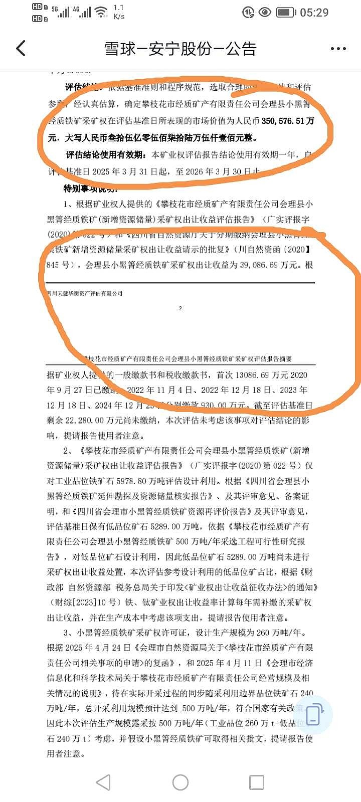 $安宁股份(SZ002978)$ 这不就是纯粹的冤总吗,龙哥2020年不到4亿拿到的矿证,好几年都没有缴清转让款,更别提复工生产了,这次转手卖给安宁,直接评估为35亿,要知道,前几年钛矿价格可比现在高,就这,安宁还要承担停工企业的坏帐,烂七八糟的费用又增加了30亿开支,你说这扯不扯。我再想,后期复工复产还需要一大笔钱,钱从何处来呢?磷酸铁锂项目和海绵钛已经花了不少,也没有回报,难道说,再启个8折定增吗?