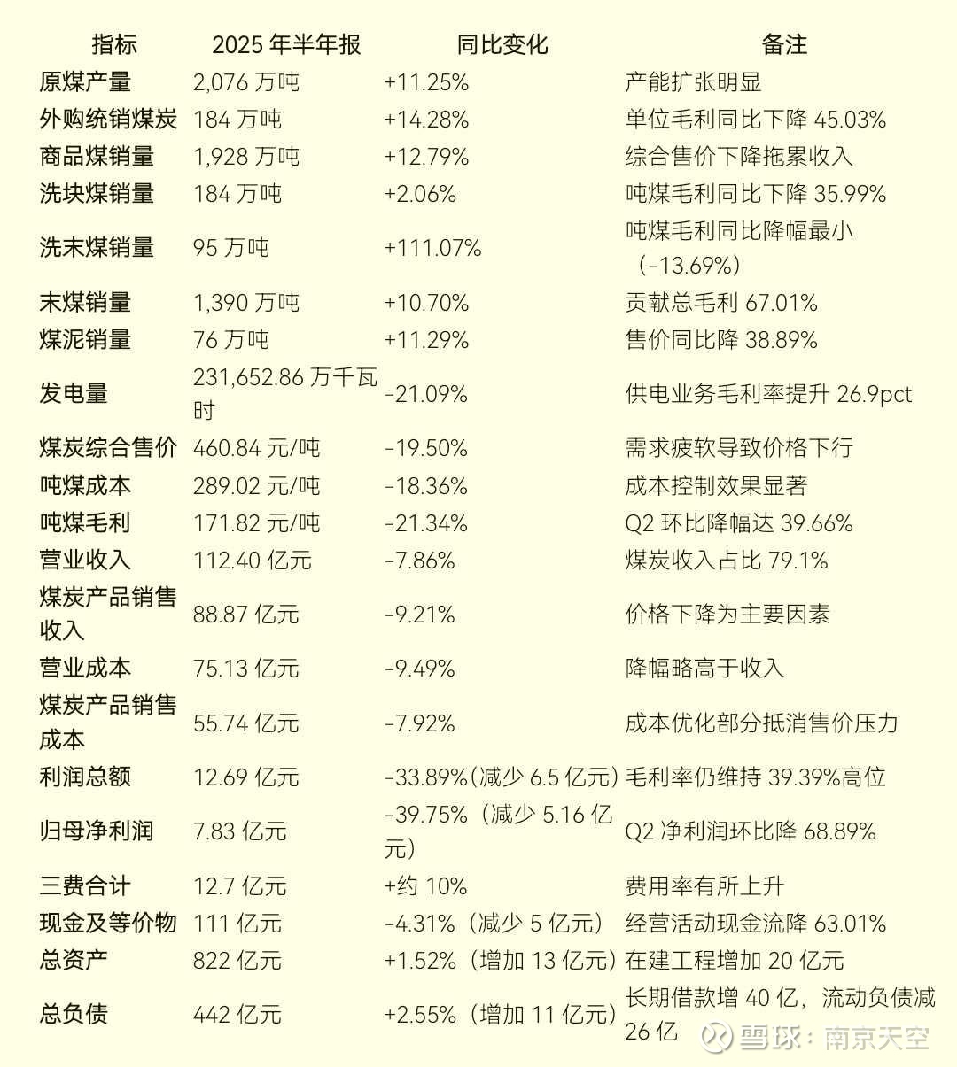 2025年上半年2,076万吨(+11.25% YoY),煤炭销量同比增加 219 万吨,使销售收入增加 12.52 亿元,煤炭售价同比减少 111.63 元/吨,使销售收入减少 21.53 亿元。