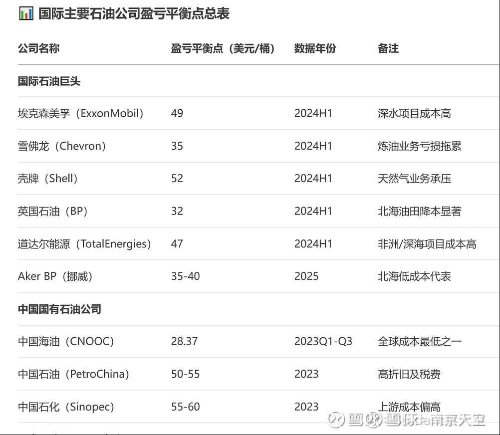 65-70美元之间,美国页岩油不仅不增产,反而不断减产,油井减少。根据C大文章分享北美、加拿大大多油气项目成本高,71美元实现油价,中海油除圭亚那外的海外平均每桶利润约5.7美元每桶。