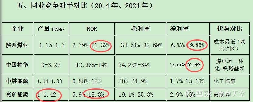 中国神华、陕西煤业、兖矿能源(国内),煤炭都具备成本优势,考虑到供给侧改革的趋势,马太效应,小煤矿、高成本煤矿每次周期后退出市场,大型煤矿企业越来越强大。