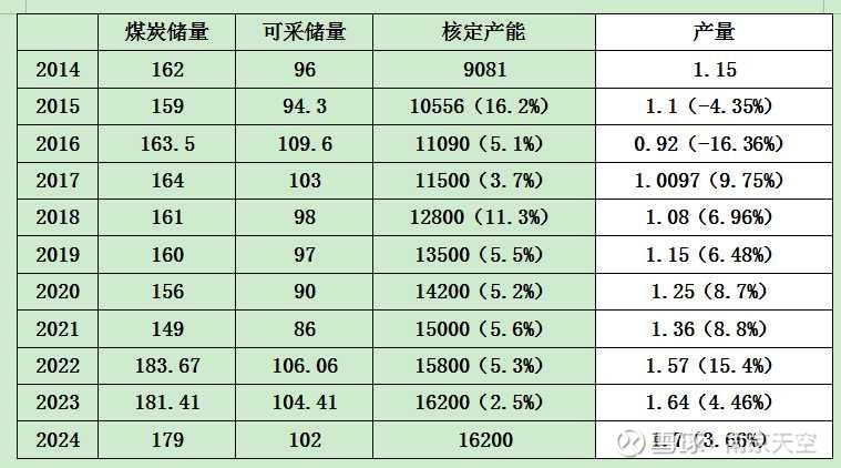 2014年产量:1.15亿吨(全国占比3.5%),动力煤龙头之一。2024年产量1.7吨,十年仅仅增长47.82%,年化3%左右。