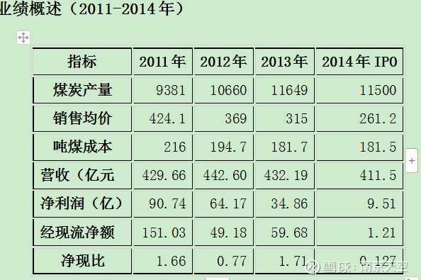 2012-2014年产量稳定增长,但是煤炭价格大幅波动,业绩波动主要受煤价周期影响,波动巨大,投资者需要做好亏损的可能准备。特别是2015年,营收325亿,净利润-29.9亿。