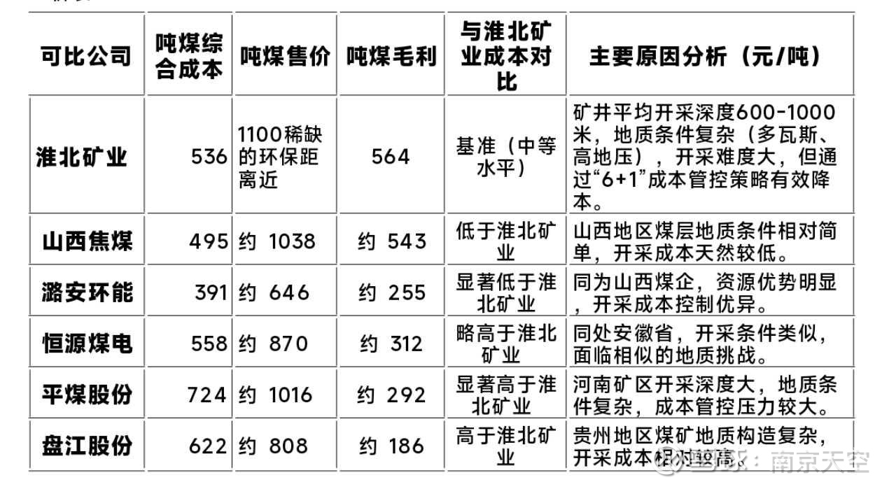 2、淮北矿业:凭借稀缺煤种和紧邻华东消费市场的区位优势,吨煤售价高达1100元,几乎是华阳股份567元的两倍。