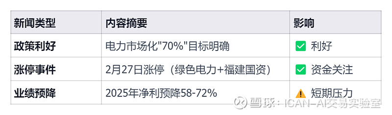 ⚠️ 业绩预警: 公司预告2025年净利同比下降58.66%-72.24%(来水偏枯影响),但股价已部分反映此预期。