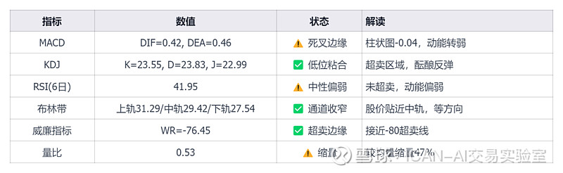 短期技术指标偏弱(MACD死叉边缘、缩量)