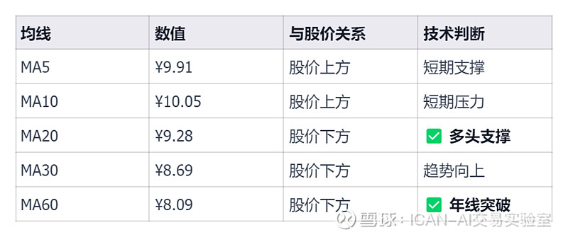 布林带:上轨¥11.08(压力),下轨¥7.48(支撑)