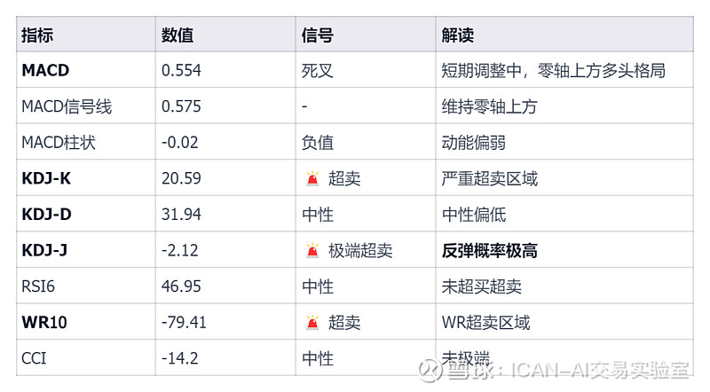 KDJ-J值跌至-2.12,处于极端超卖状态,短期反弹概率极高