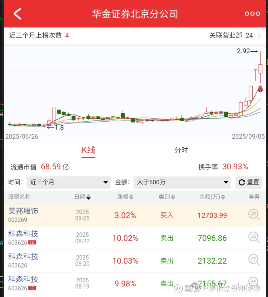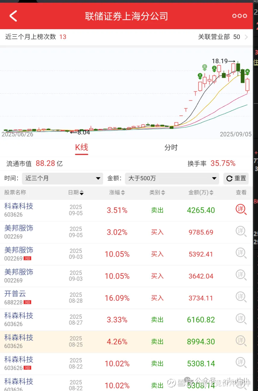 几个买榜席位是联动席位,龙虎榜出现温州席位,美邦这股有跟温州有千丝万缕的关系,中信建投的席位操作相同大概率也是自己人。联储上海和华金北京新冒出来的席位都在$科森科技(SH603626)$ 大笔卖出过,每个席位看着都有点关系。如果是一起的这股必定拉升,这里远远没有原理他们的成本区,必须拉升打出辨识度才能赚钱。