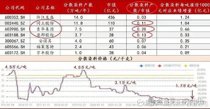 券商口径普遍龙盛产能14W,闰土11W,吉华7.5W,那截止到现在的利润增厚分别是11亿,8.8亿,6亿。