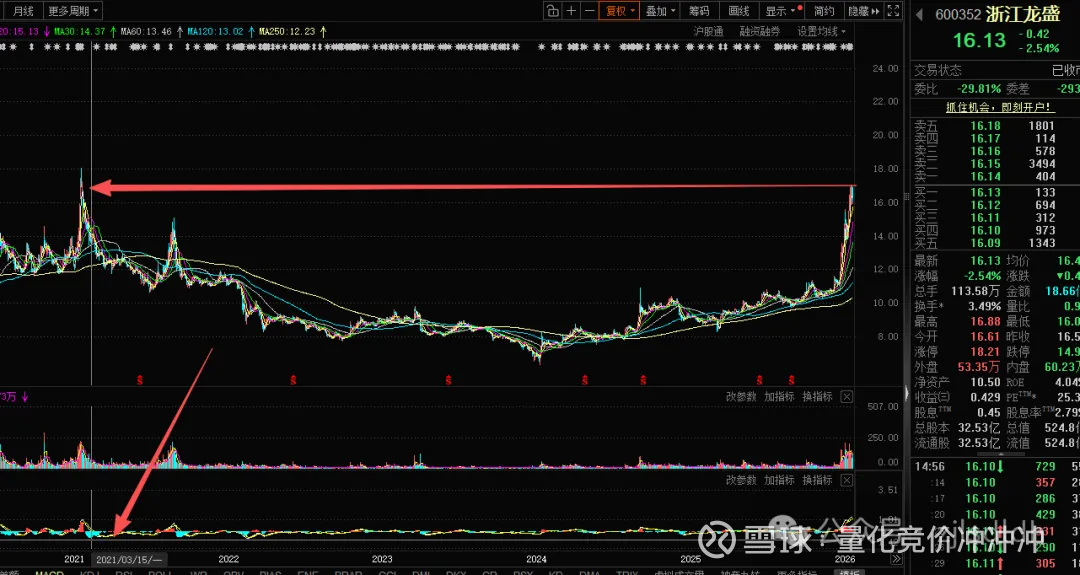 龙盛没有给业绩预报去年20亿,闰土能赚钱龙盛不该亏,给龙盛取20亿保底,11亿变化,31亿利润,今天市值524亿,对于PE16.9