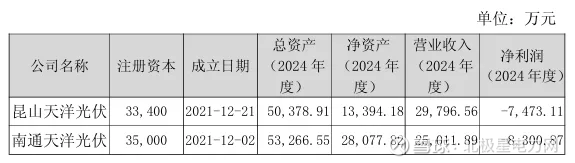 光伏封装胶膜项目所产生的收入占天洋新材总营收的比例为2024年度的48%、2025年度的30%(未经审计)以下,2024年度,光伏封装胶膜项目产生的净利润约为-2.4亿元。事实的确如此,海安天洋新材料之外,上述4大胶膜项目实施主体均处于亏损状态,截至2024年12月31日,各个实施主体的基本情况如下: