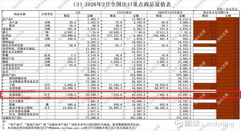 从贸易数据中可以看出,2026 年 1-2 月,中国的集成电路销售额为 433.2 亿美元,而去年 1-2 月这一数字为 251 亿美元。