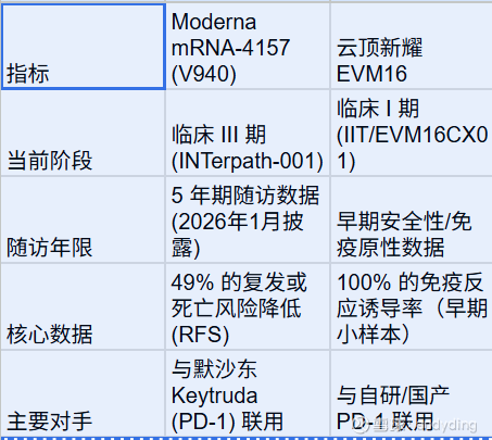 * 针对性策略:Moderna 强在黑色素瘤(欧美高发),而云顶新耀的 EVM16 正在同步探索消化道肿瘤、肺癌等亚洲高发癌种,这是一种聪明的差异化突围。