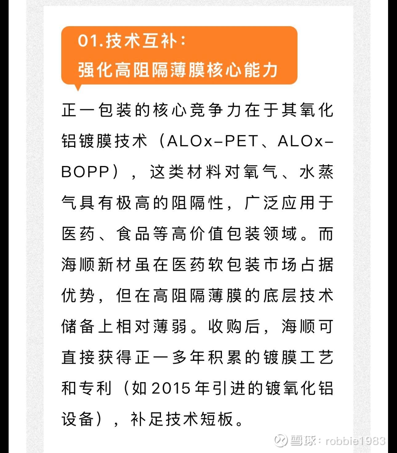 $海顺新材(SZ300501)$ 转一篇并购正一包装的文章。海顺在投资扩产内生增长的同时进行外延并购,形成优势互补,产业协同。