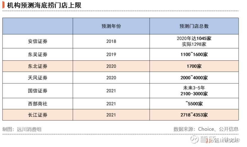 2021年券商预测的门店上限动辄4000家-5000家。实际上后面证明了,加密不到这种程度,2022年开始海底捞就开始了“啄木鸟计划”。