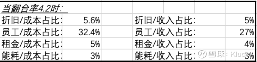 当每天翻台率为4.2左右时,每天销售额此时是10万,年销售额3800万,每年利润600多万,如果不算折旧,加回折旧,能赚800多万,前期投入900多万,一年多一点就回本(现金流层面的投资回收期就是这么算的)。
