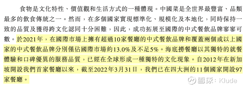 特海在财报里写到,2021年,在国外开十家中餐厅的品牌不多,在两个以上国家开中餐厅的更少。海底捞2012年就出海了,有先发优势。