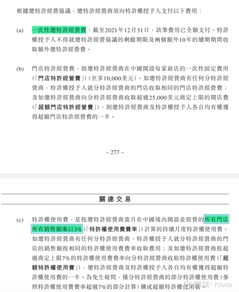 除了这三块特许经营相关的,还有软件许可费等乱七八糟的,也是计入无形资产。前几年,几部分的抽成加起来,相当于差不多每年营收的5%都要给母公司。