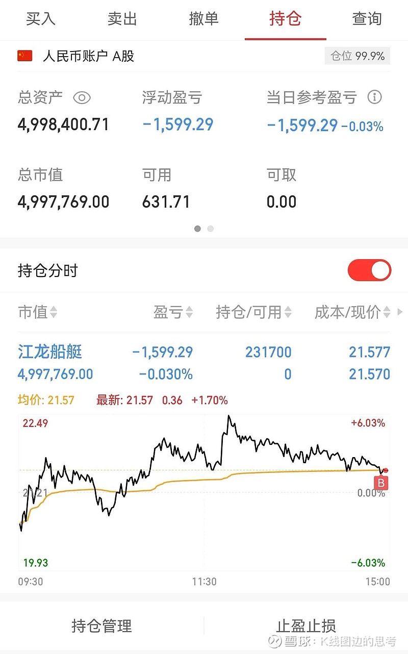 11月27日 收盘记录500万大A翻倍记 第( 1 )天!当日参考盈亏: 1600目前持有: 江龙船艇机遇与挑战并存,希望能创造奇迹,更到数倍那天。特别声明:本文仅是验证个人观点及操作不构成投资建议,仅供参考!