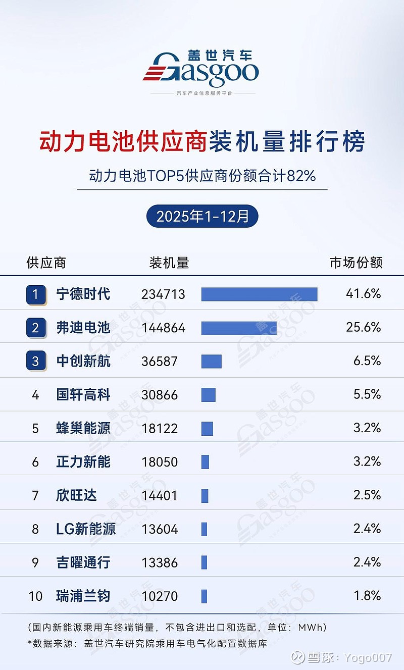 • 动力电池(MWh):弗迪电池以25.6%份额位居第二,与宁德时代(41.6%)共同占据行业67%份额,是仅有的两家份额超20%的企业。