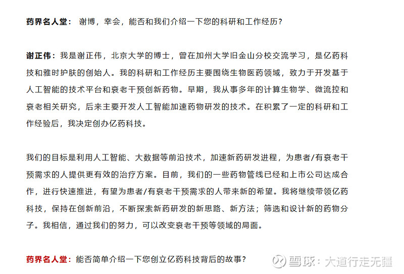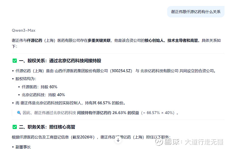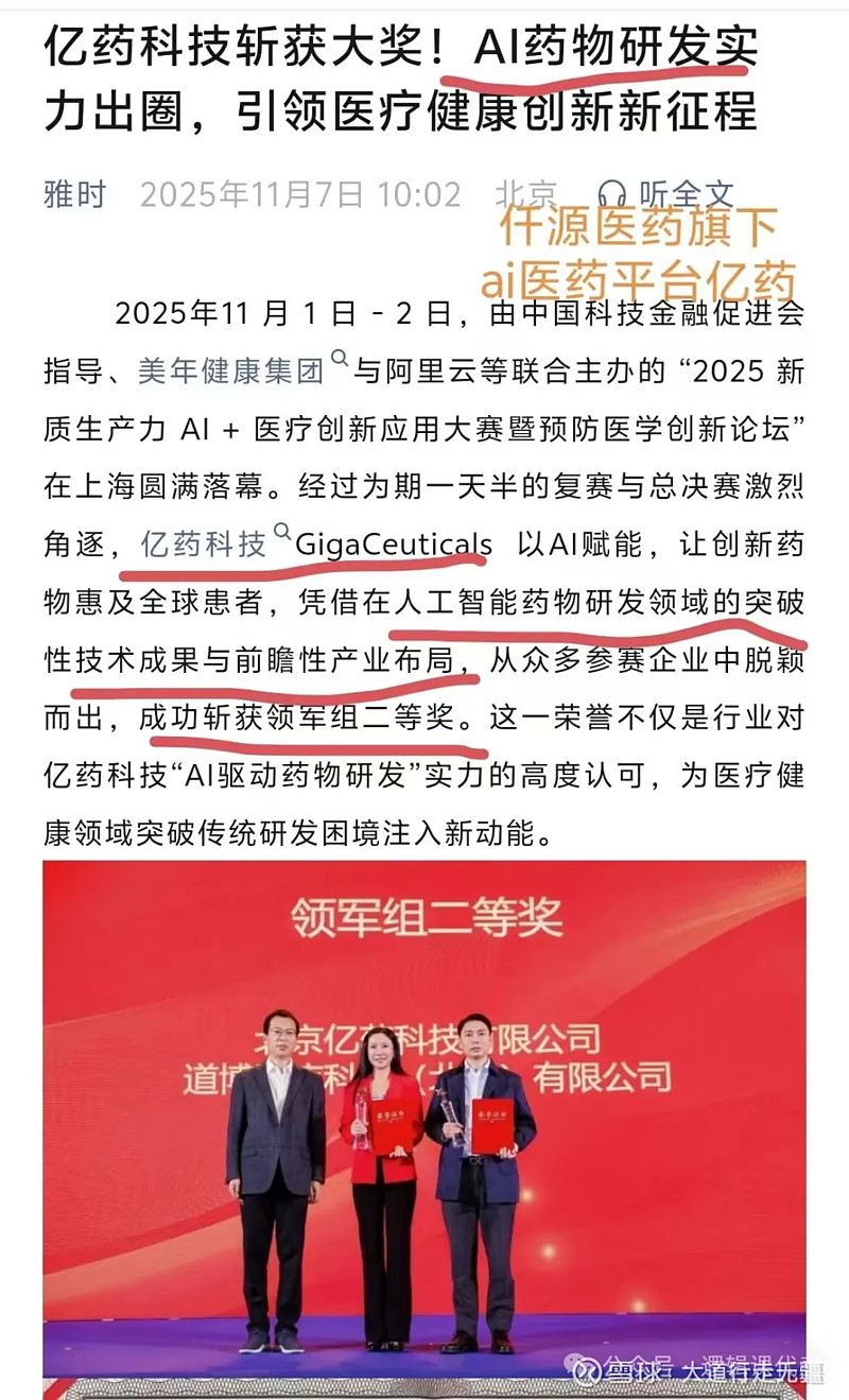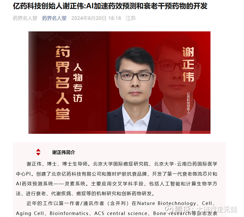 $仟源医药(SZ300254)$ 目前市值最小的AI制药公司,仟源医药旗下亿药科技是北大系的AI制药平台,在抗癌药、抗衰老、美容等方面积累深厚,AI制药业务负责人谢正伟是北大著名的AI制药专家。谢正伟,实锤合作,仟源医药持股60%,北京亿药科技:持股 40%,谢正伟是北京亿药科技的实际控制人,持有其 66.57% 的股份。