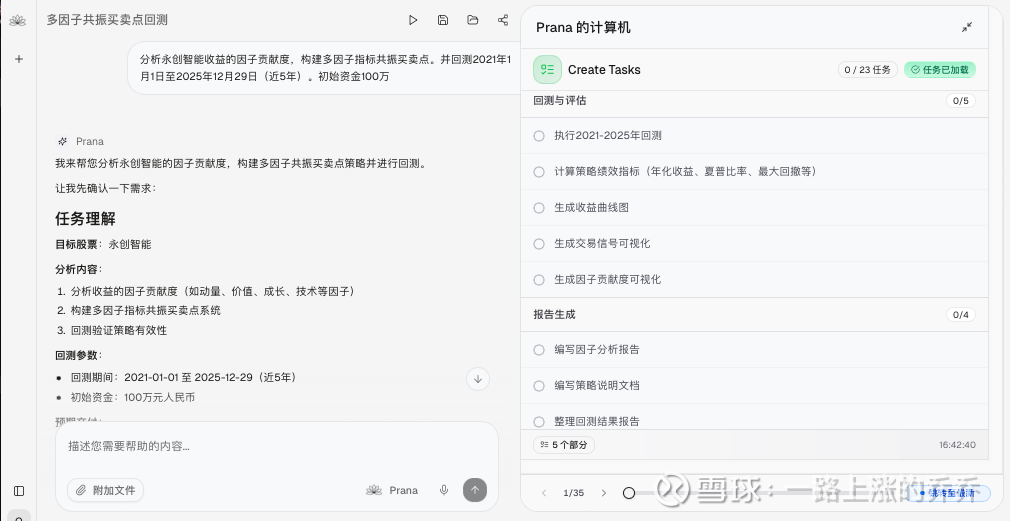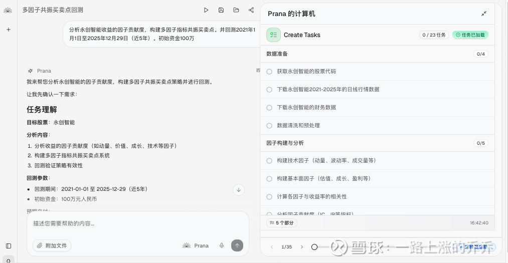 在量化研究中,一个想法的价值在于其能否被系统性地验证。本文将以「永创智能」为案例,完整展示如何借助 「Prana」AI量化研究平台,实战化地完成一次多因子共振策略的完整闭环研究——从数据到因子,从模型到回测。