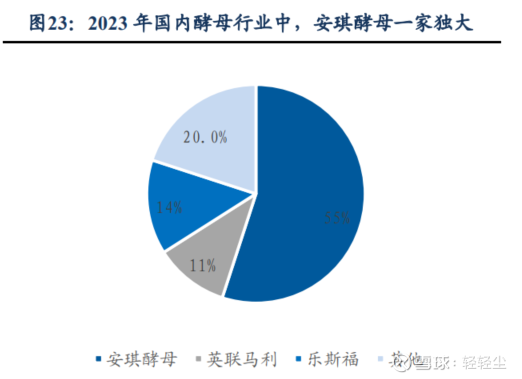 酵母行业属于典型的寡头垄断行业,整体竞争格局稳定。全球酵母行业主要由法国乐斯福、中国安琪酵母、英国英联马利三家公司主导,合计市场占有率超过70%。在国内市场,安琪酵母占据大约55%市场份额,形成了一家独大的格局。乐斯福和英联马利在中国市场份额约为14%和11%。随着行业的发展,头部企业凭借技术、规模、品牌、渠道全方面的优势,行业集中度有进一步提升的趋势。