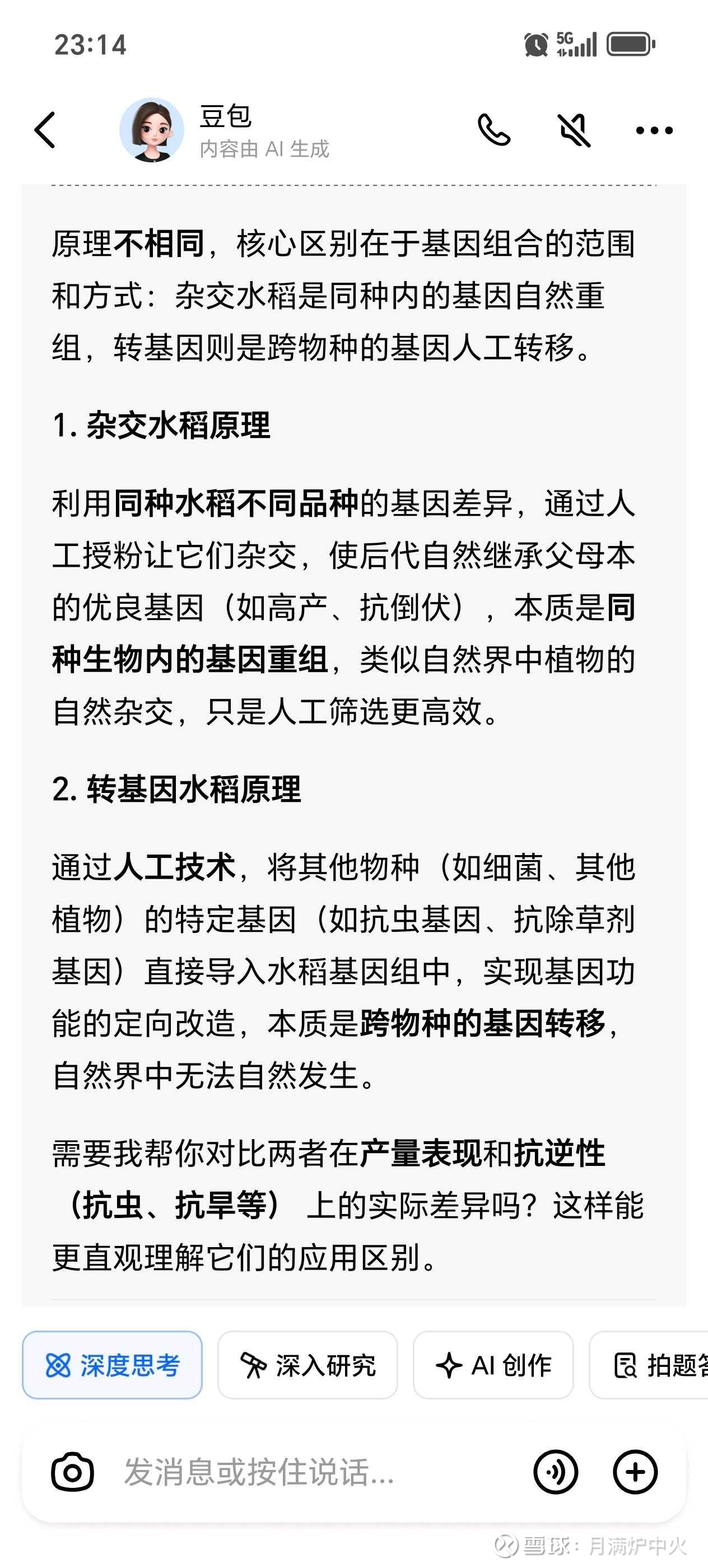 回复@月满炉中火: 杂交水稻是从结果出发选育,就相当于你今天生了疟疾,我给你试药,试到青蒿,你的病好了,我记录下来,青蒿能治疗疟疾,而转基因则是先研究为什么会发生疟疾,针对这个病应该怎么治疗,然后我发现草药青蒿可以治疗疟疾,于是去研究青蒿里到底哪个成分可以治疗疟疾,然后验证到最后发现有效成分是青蒿素,于是提取青蒿素做药,一群人担心提纯的青蒿素有副作用,而觉得自然界存在的青蒿绝对安全……这……逻辑上说不通吧//@月满炉中火:回复@月满炉中火:我不是生物学的,信豆包 查看图片