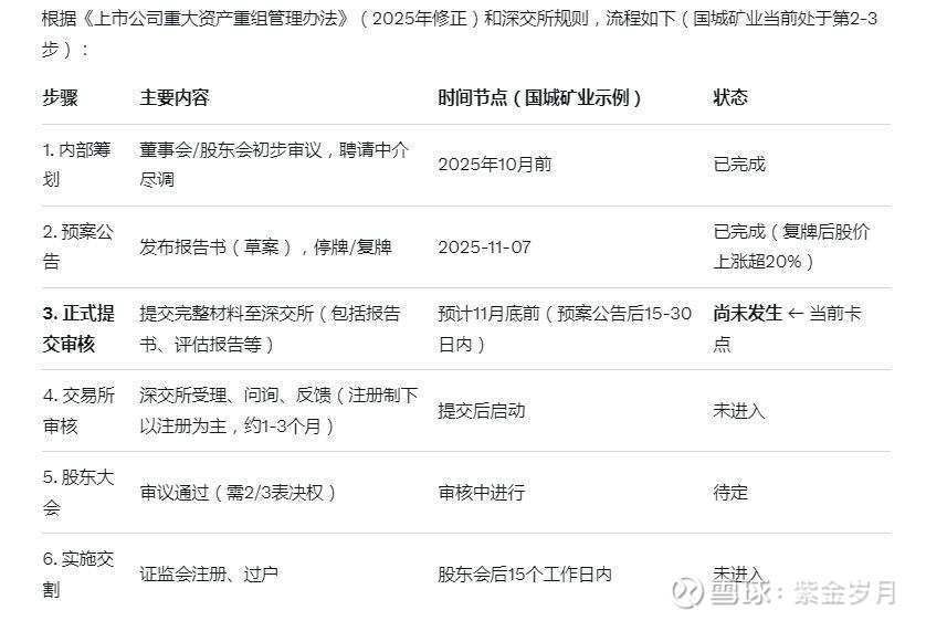 为什么延迟提交?:需完善材料(如业绩补偿协议、贷款合同),并回应潜在问询。国城矿业公告显示,已签署19亿元并购贷款协议,但正式提交需董事会/监事会最终确认。