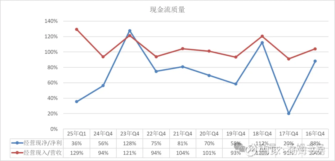 现金流质量:经营现金流净入和营业收入的比率较为平稳,在94%-121%之间,经营现金流净额和净利润的比率有一定起伏,需深入应收账款和现金流量表补充资料。