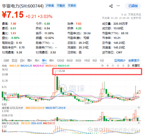 据现有的官方数据,华银电力归母净利润重回2015年高峰期。股价却只有以前的15.50的一半不到,如图所示:希望各位粉丝仔细斟酌损益,祝铁粉发大财啊