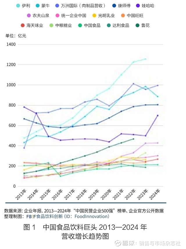 现象:2013—2024年,14家食品饮料巨头年营收呈小范围波动