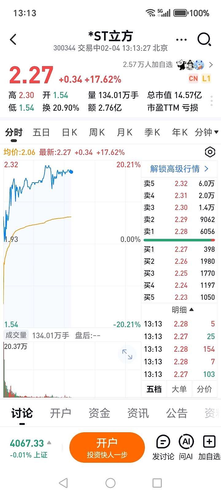 $*ST立方(SZ300344)$