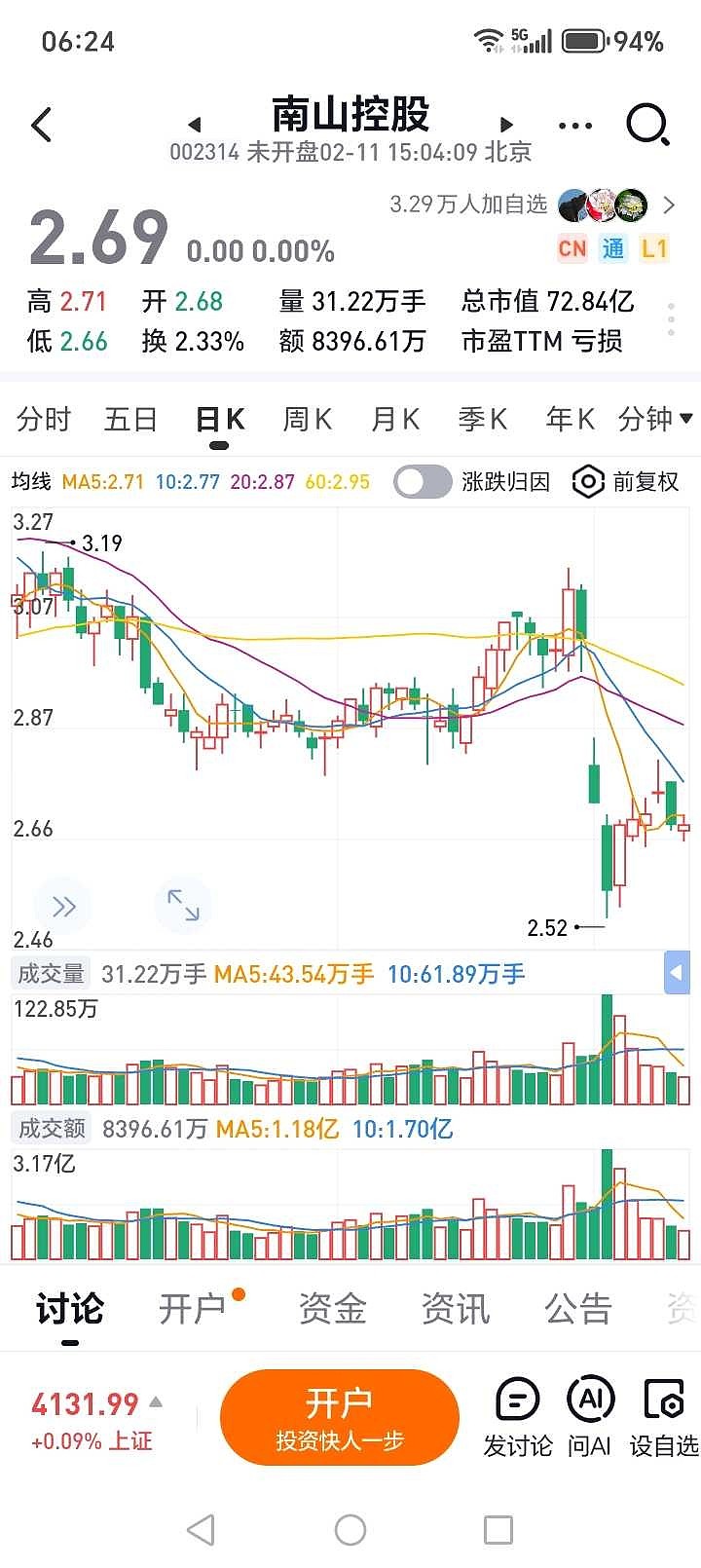 $南山控股(SZ002314)$