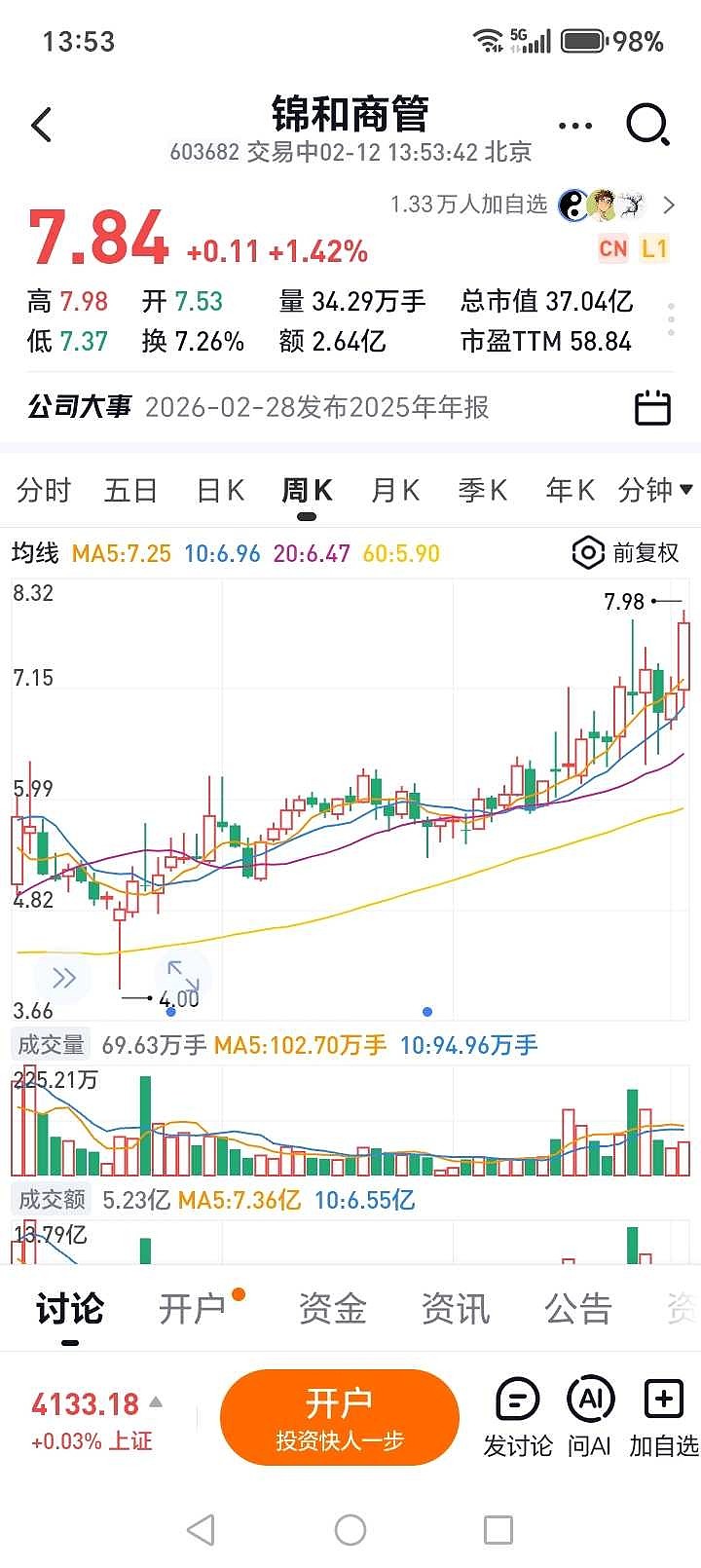 $锦和商管(SH603682)$