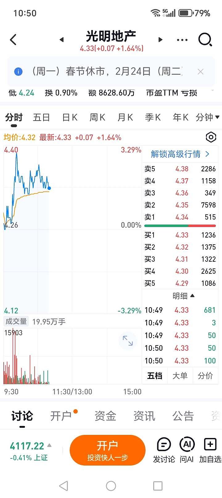 $光明地产(SH600708)$