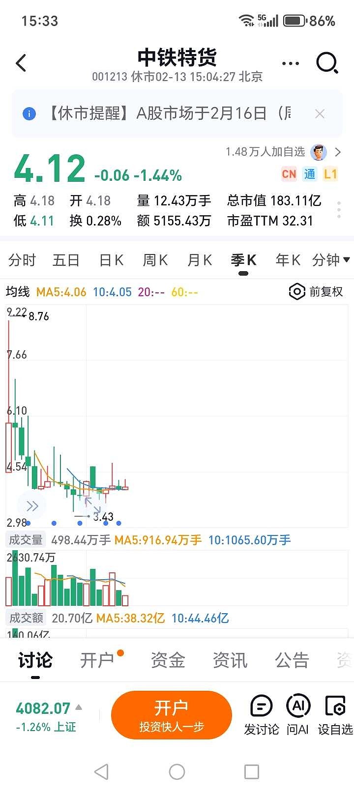 $中铁特货(SZ001213)$
