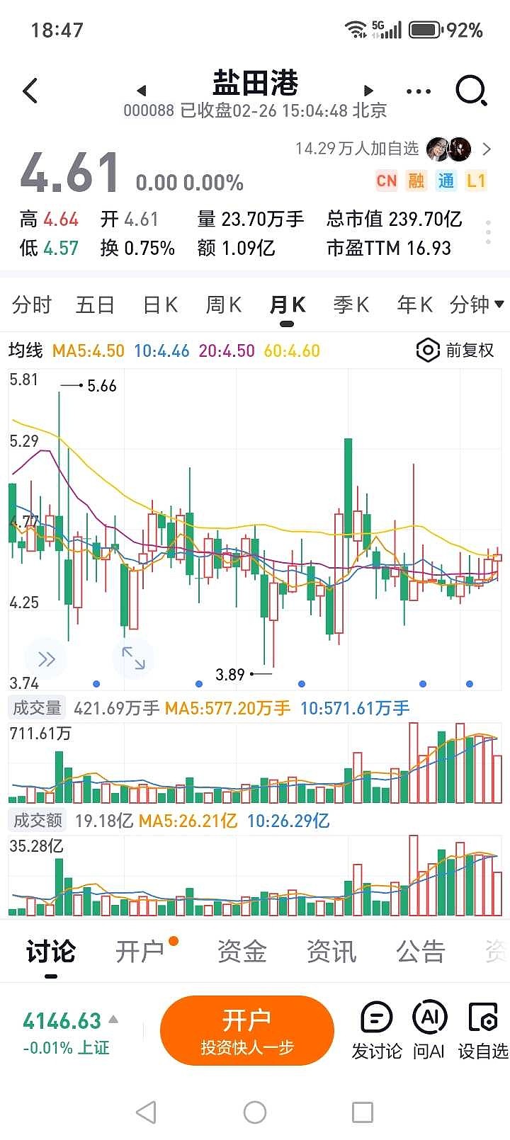 $盐田港(SZ000088)$