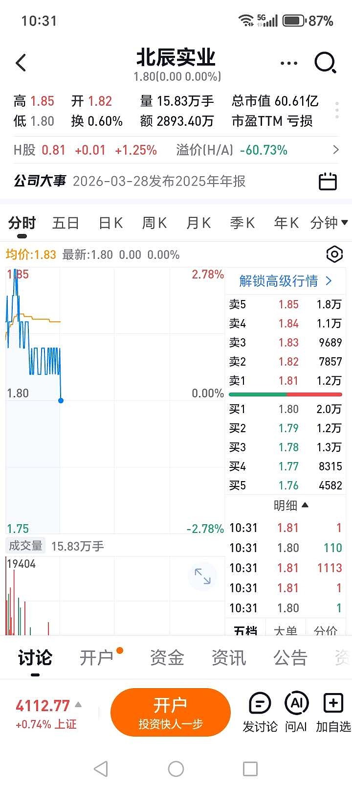 $北辰实业(SH601588)$