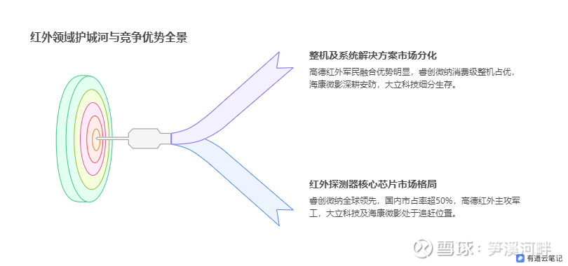 要看公司的可持续发展能力和创利能力,重点还是要分析公司的竞争对手,查看公司在市场上的比较竞争优势。鉴于公司占90%以上的营收来源于红外业务,这里主要从红外业务看公司“护城河”的厚度。根据行业数据及公开信息,$XD睿创微(SH688002)$ 在行业内的主要竞争对手为高德红外、大立科技、海康微影等,四家公司在非制冷红外探测器及相关整机市场的份额分布呈现显著的梯队分化,具体如下: