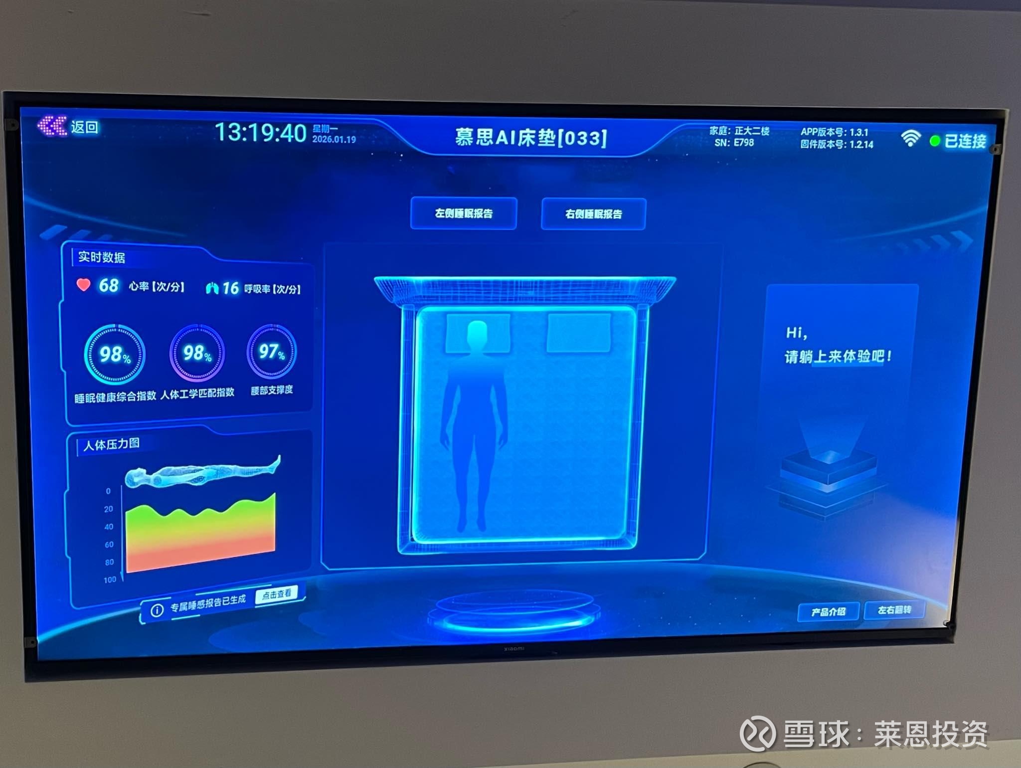 慕思的AI床垫体验了一下还不错,根据你的身体姿态睡眠状态下自动调节软硬,其次是睡眠数据的检测。慕思服务的是特定客群。