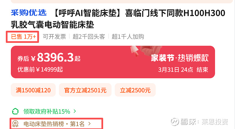 周末慕思和喜临门分别发布了自家的新款ai智能床垫,喜临门无论是人气和销量都是第一。两者股价今日都是大跌,今天整个大盘,还有家具板块都出现了大跌。但是喜临门出现跌停是很让人意外的,这里能够看出,资金不计成本地出逃。资金对于ai床垫似乎并不看好,还有其销量数据的真实性打个问号。ai床垫是否可持续,是否能够真正反映到未来的业绩中,需要时间去验证。