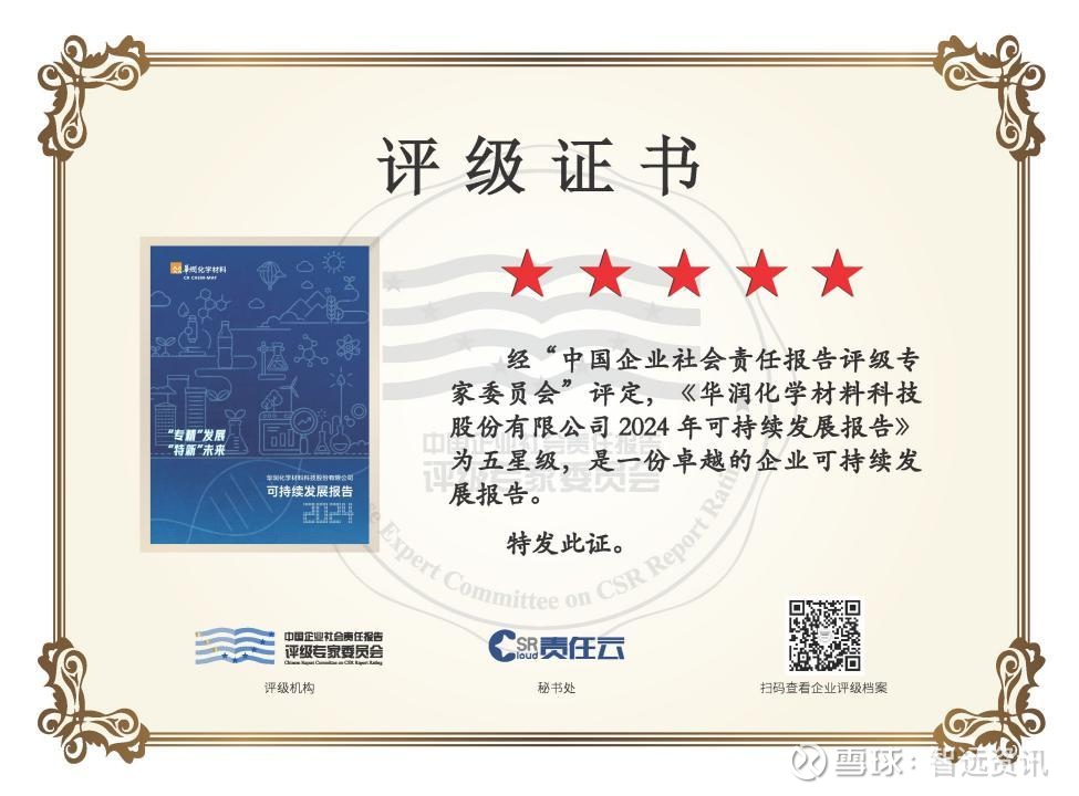 近日,华润集团及旗下多家子公司集中发布2024年度可持续发展报告,全面展现国央企在推动高质量发展、践行社会责任和提升ESG治理水平方面的责任担当。在同期举行的粤港澳大湾区国有企业社会价值及ESG报告发布活动中,华润化学材料科技股份有限公司凭借高质量的报告编制水平与扎实深入的可持续发展实践,荣获五星卓越评价,成为区域国企ESG建设的标杆企业之一。