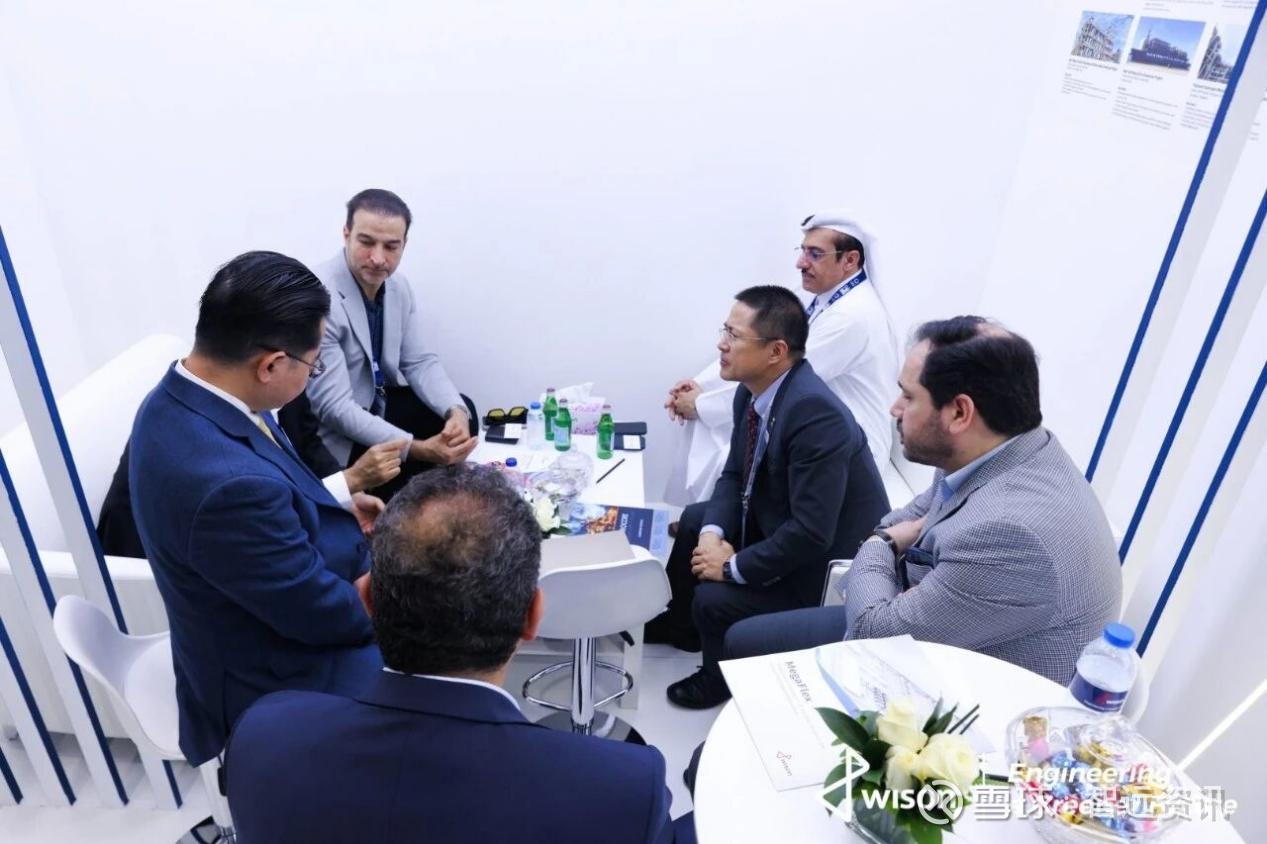 展会期间,来自中东、欧洲、北美、非洲等众多国家和地区的客户、合作伙伴及行业专家纷纷到访展台交流。参观者对展出的绿氢及绿色化工、模块化等解决方案表现出浓厚兴趣,现场气氛热烈专业,充分体现惠生工程在全球市场的关注度与影响力。