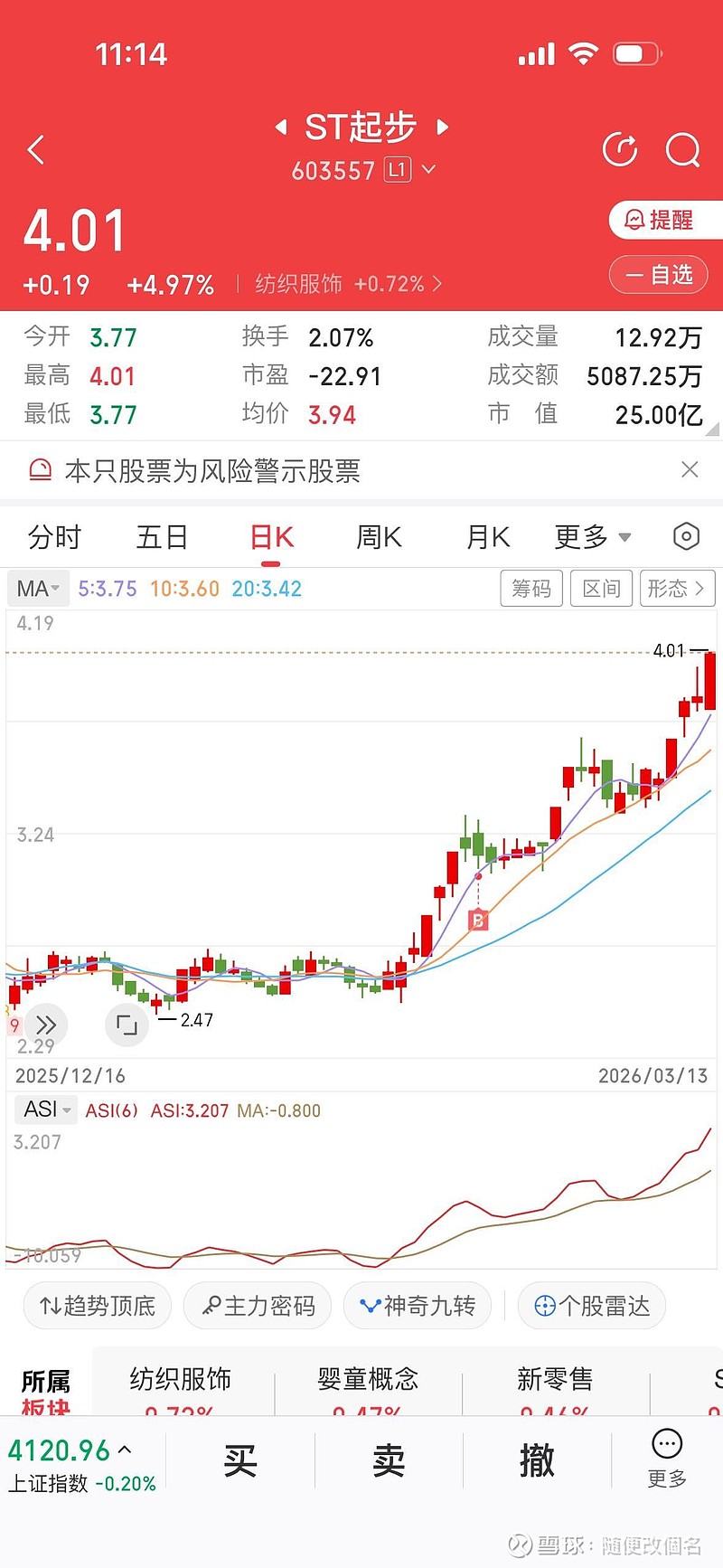 $ST起步(SH603557)$