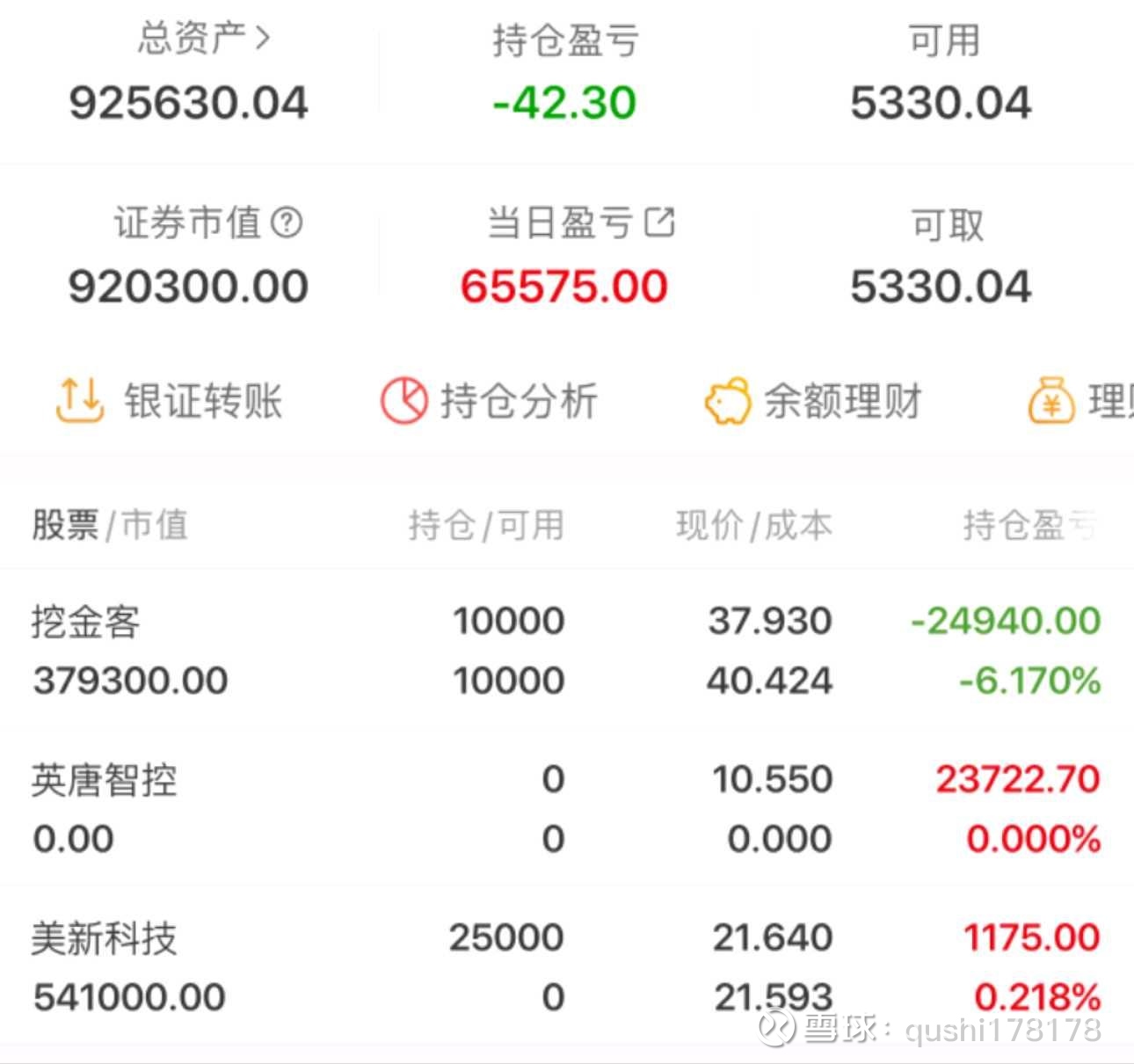 50万到500万第23天。继续持有挖金客,卖出英唐智控,买入美新科技。账户资金:925630。英唐智控大幅反弹创新高,出来了,还是出早了点。然后买入美新科技,做一个高低切换,希望下周一不要让我失望#财经# #实盘分享# #股票#