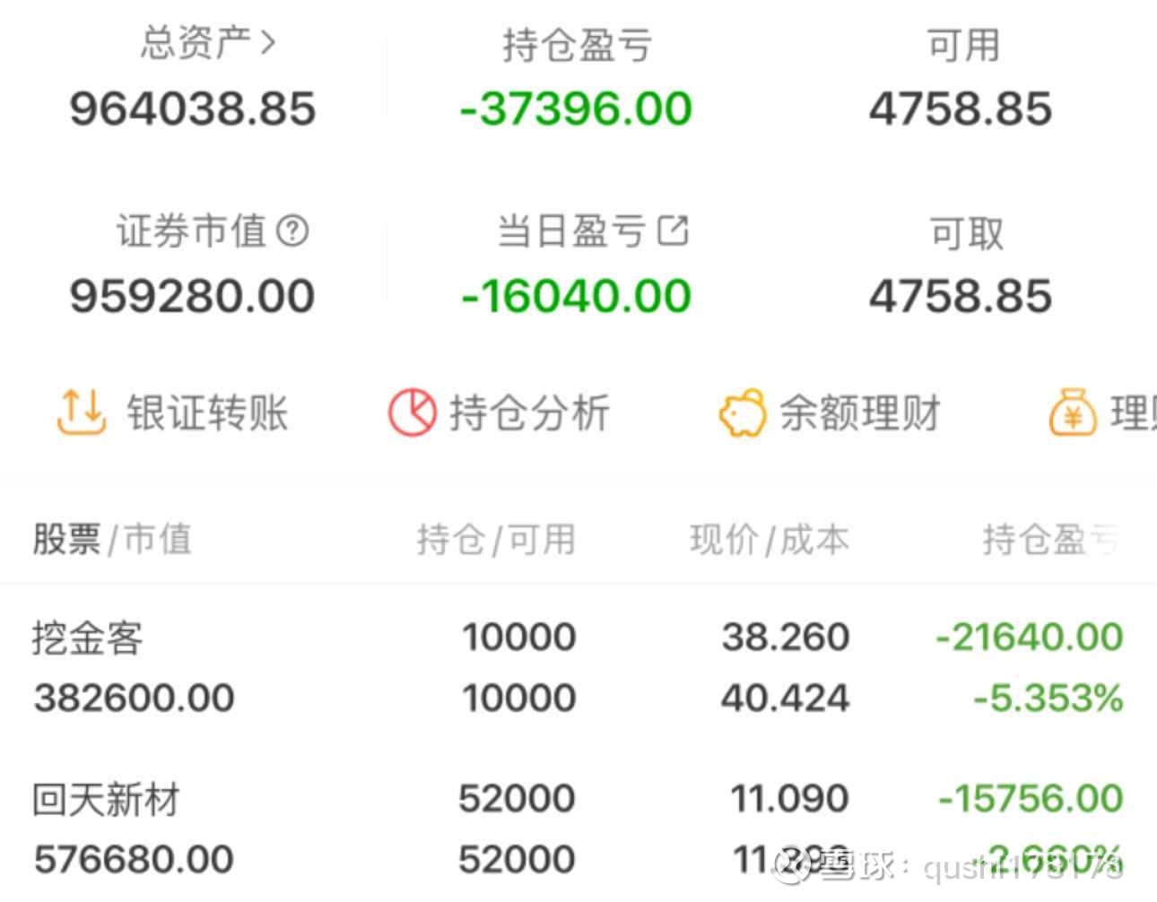 。账户资金:964038。今天两支票都有点弱,暂时没动,明天看情况,不行就出来换票。