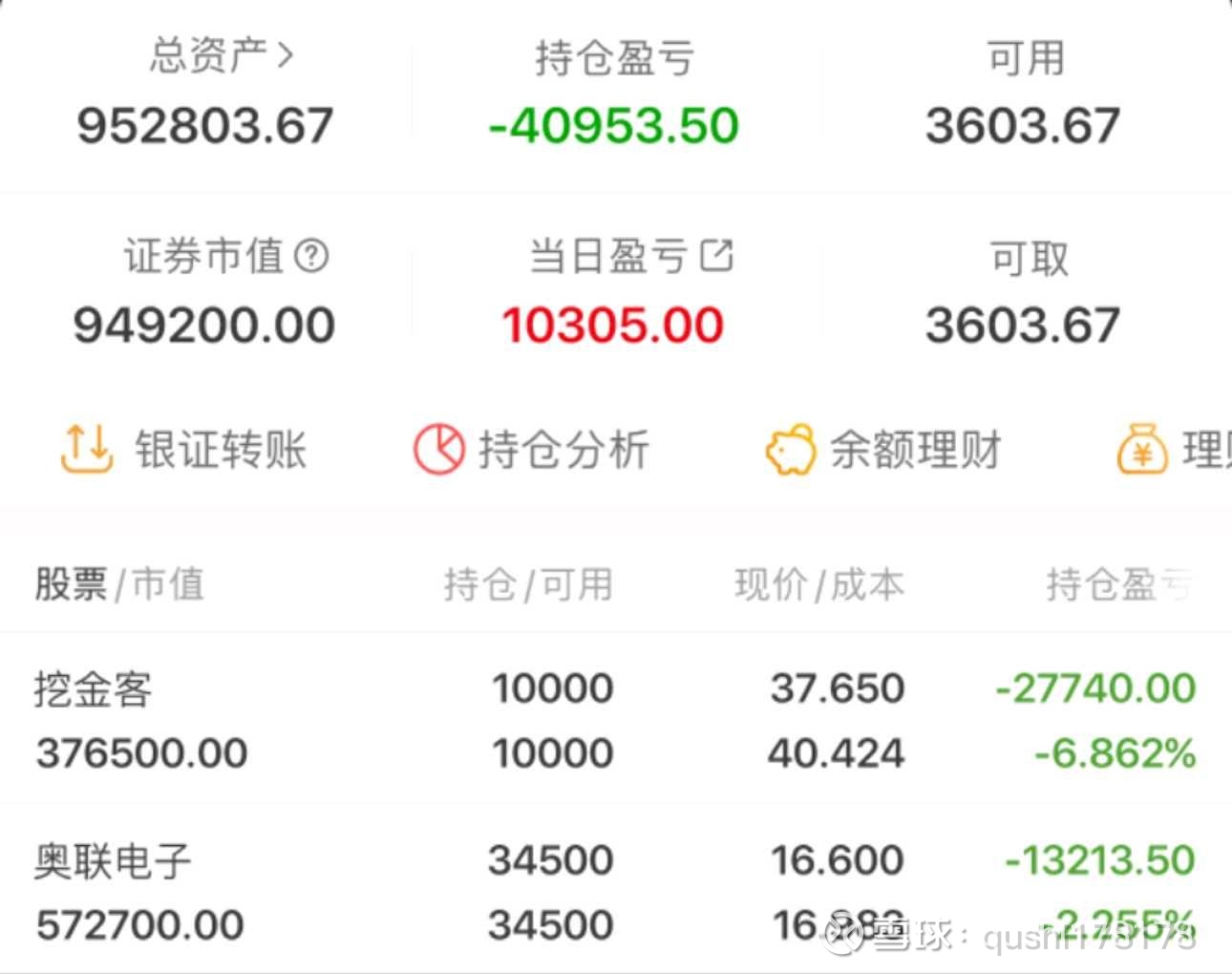 50万到500万第34天。继续持有挖金客和奥联电子。