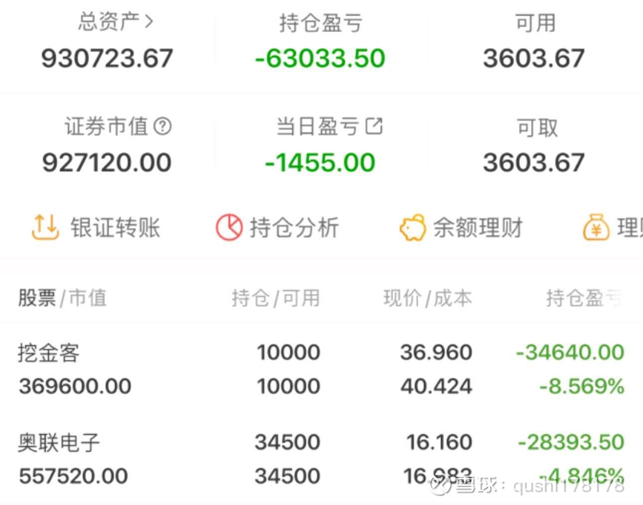 50万到500万第36天。继续持有挖金客和奥联电子。今天盘面大幅反弹,两支票都比较弱,几次以为要起来,都没起来。想买的票也涨高了,不适合换,就没有动。明天应该有补涨,到时候再找个位置换票。#股票# #实盘分享# #财经#